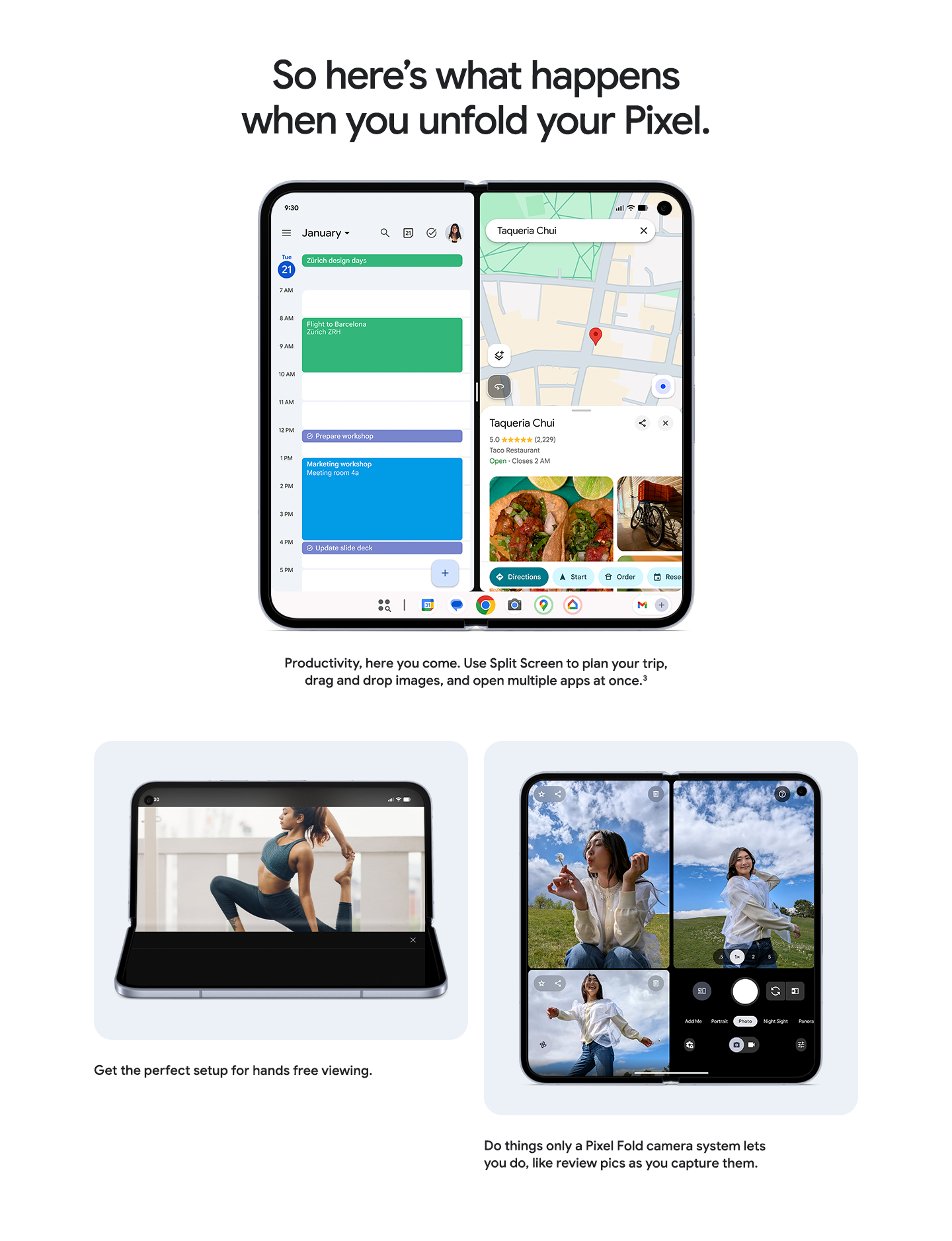 Front Camera : Front Cover : 10MP (f2.2) Inside : 10MP (f2.2) Rear Camera : 48MP Wide Main (f1.7) , 10MP Ultrawide (f2.2), 10.8MP Tele (f3.05) |