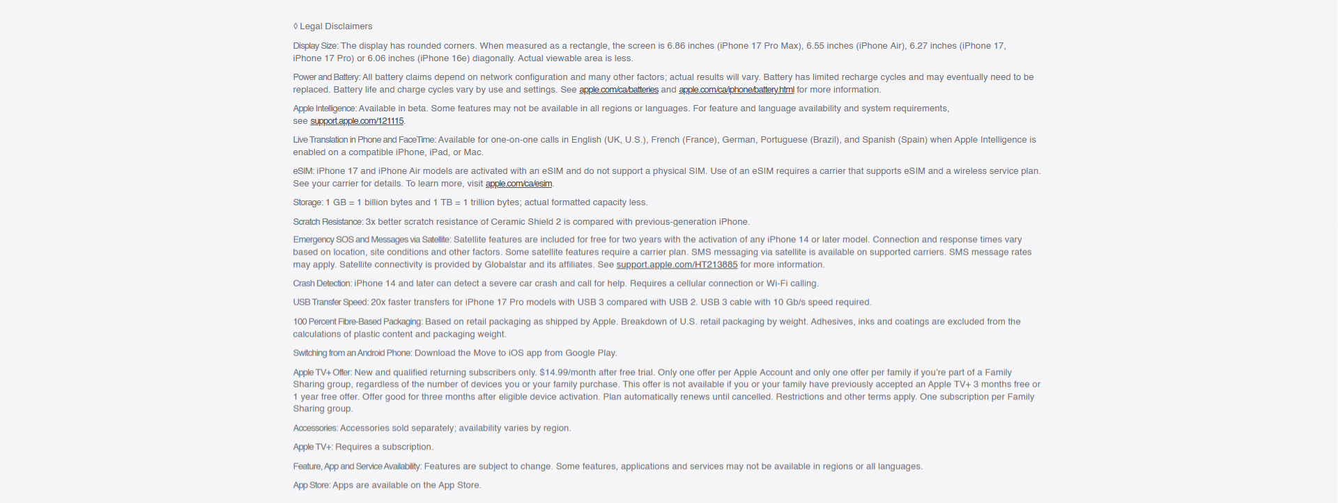 iPhone with iOS 26, USB-C Charge Cable, Documentation |