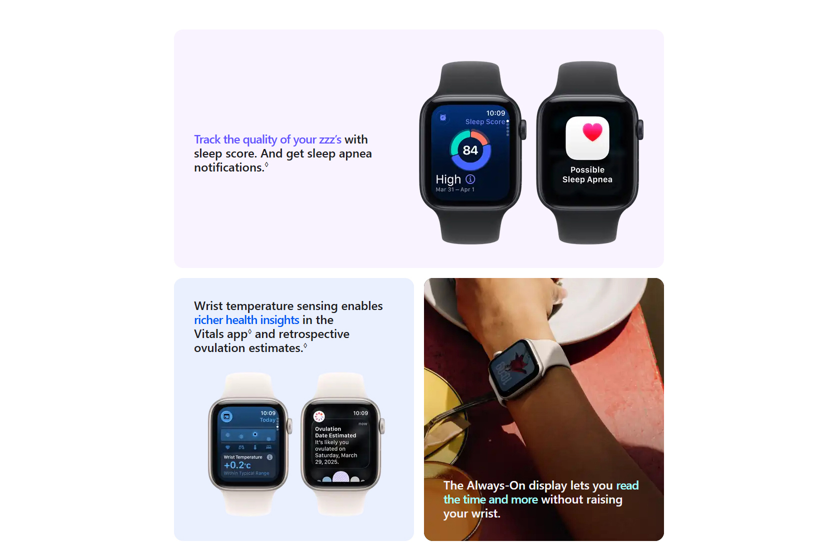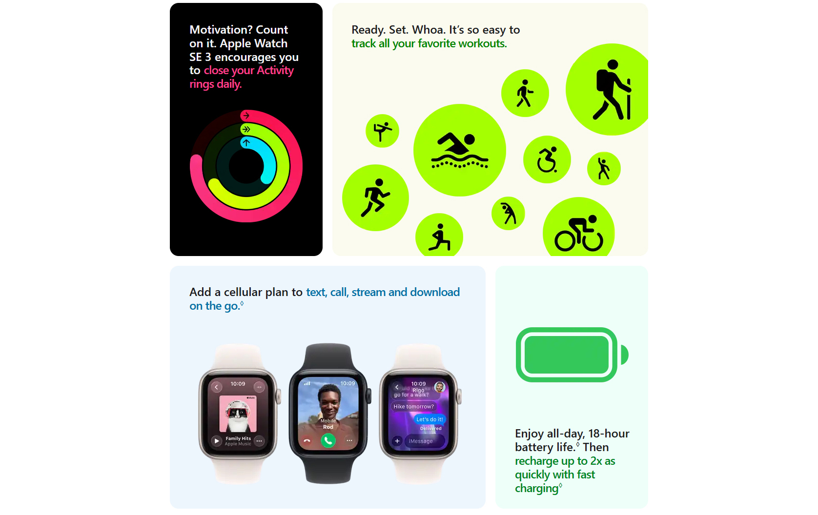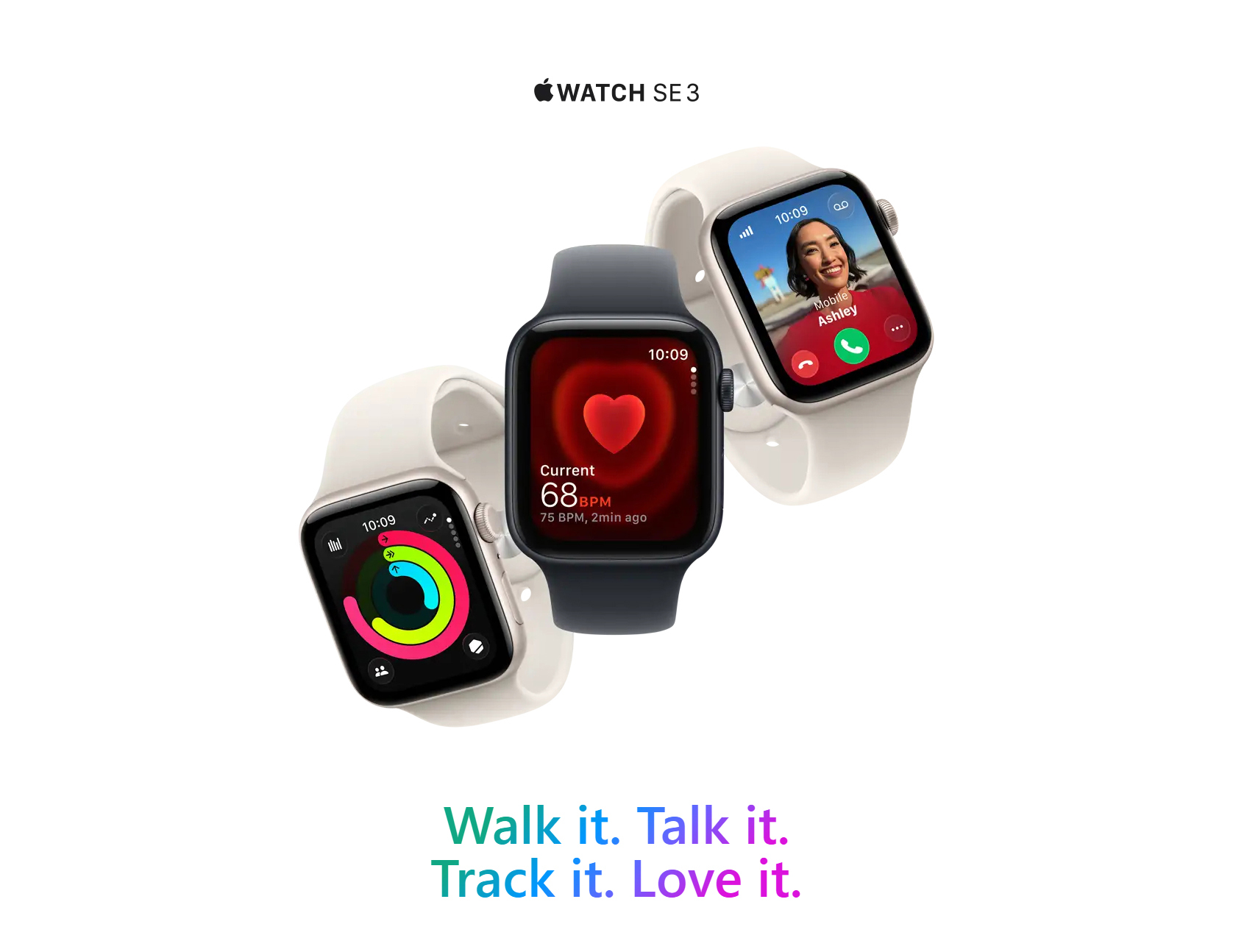 Apple Watch SE 3, Sport Band, Apple Watch Magnetic Fast Charger to USB‑C Cable (1 m) |