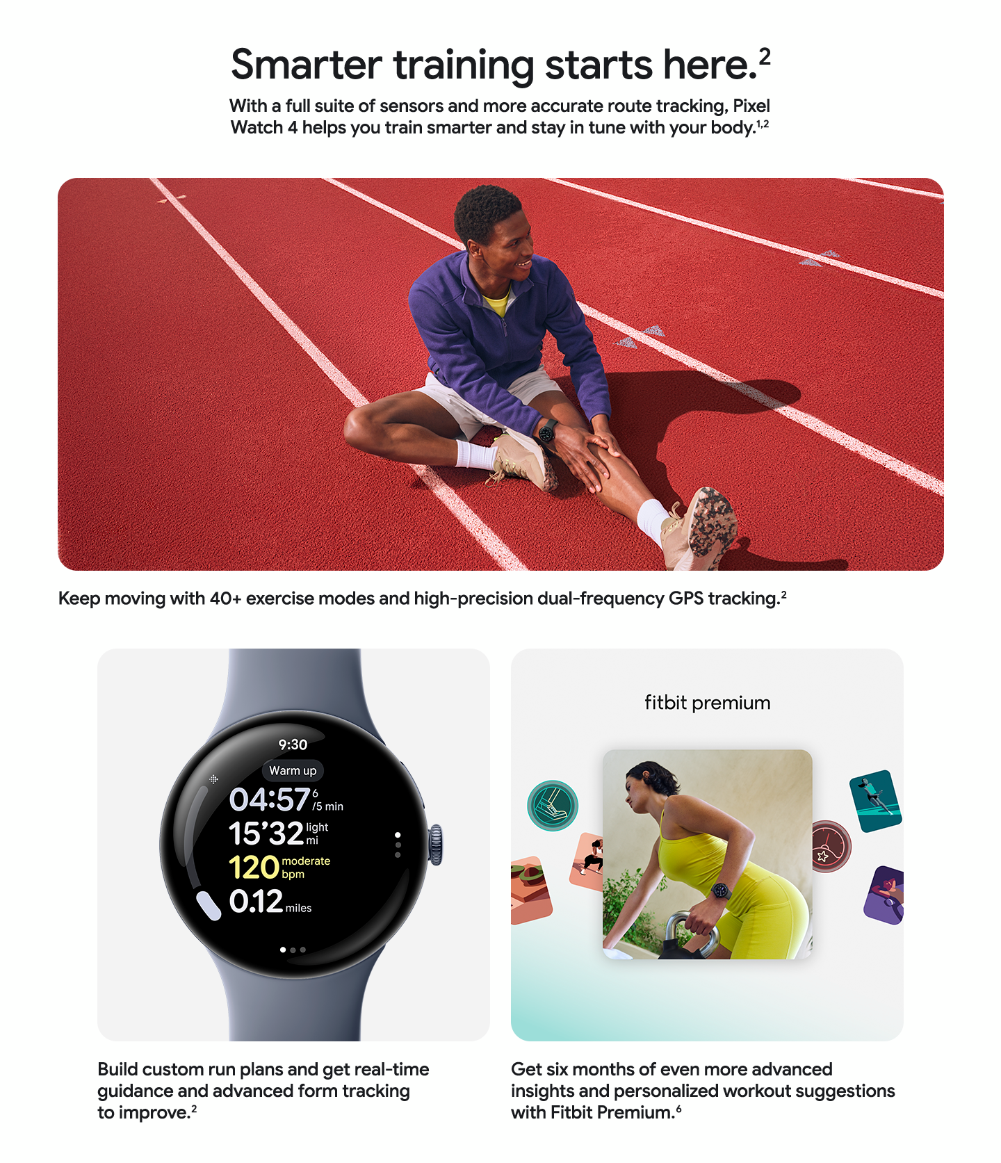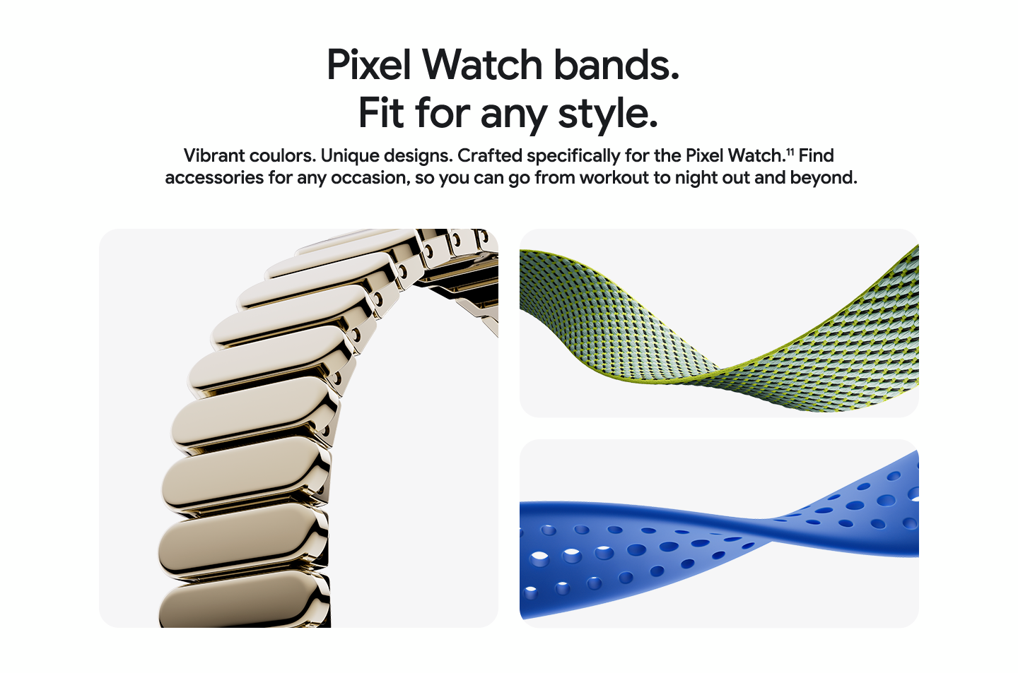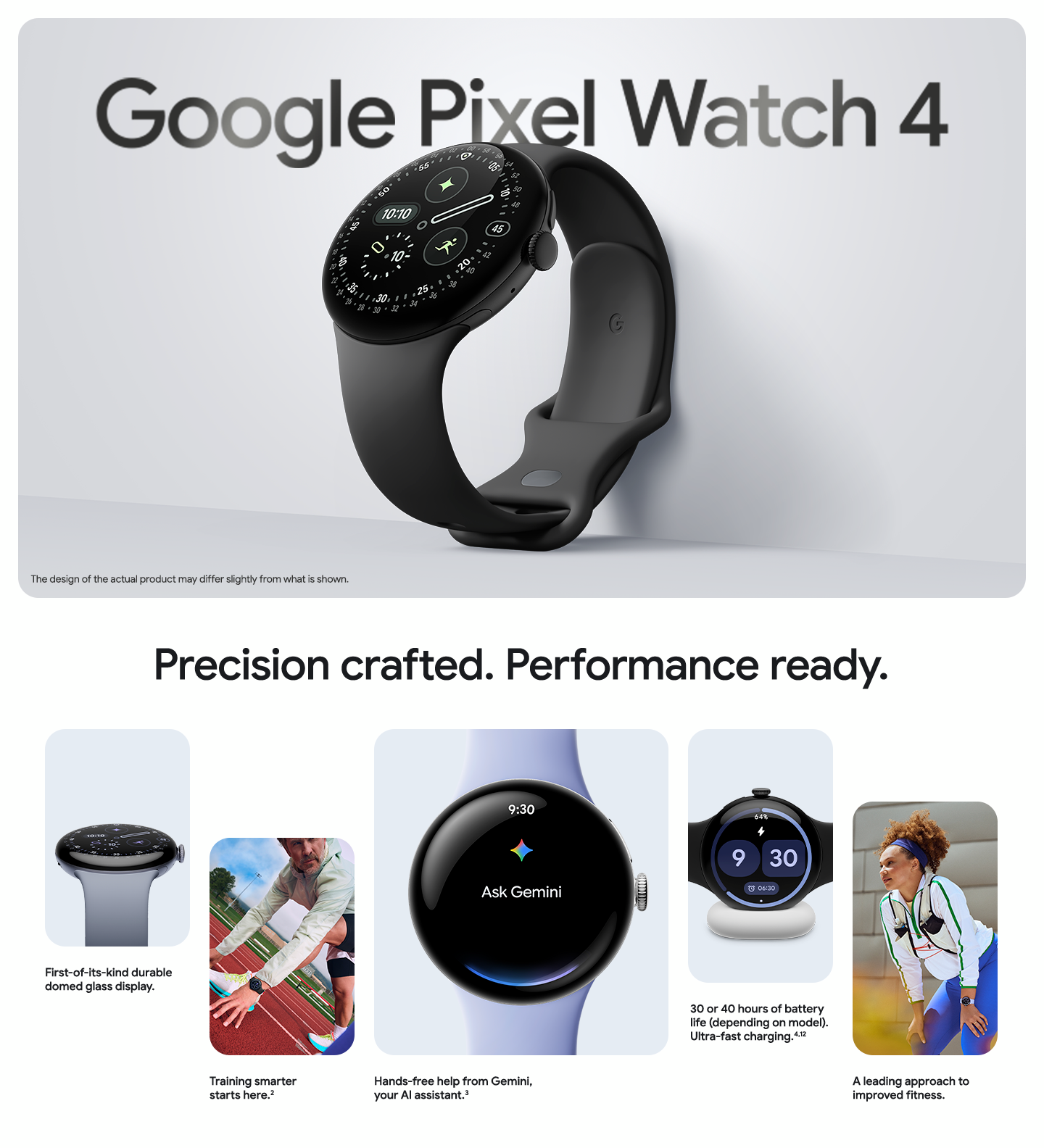 | Google Pixel Watch 4 (45 mm/41 mm) Active Band (small and large wristbands) USB-C® Fast Charging Cable Quick start guide |